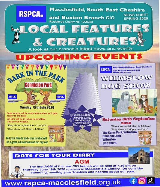 Welcome! We are run entirely by volunteers and, just like other branches, our Branch is a separately registered charity (1209388) working under the umbrella of the National Society. We care for animals in parts of Cheshire and Derbyshire.