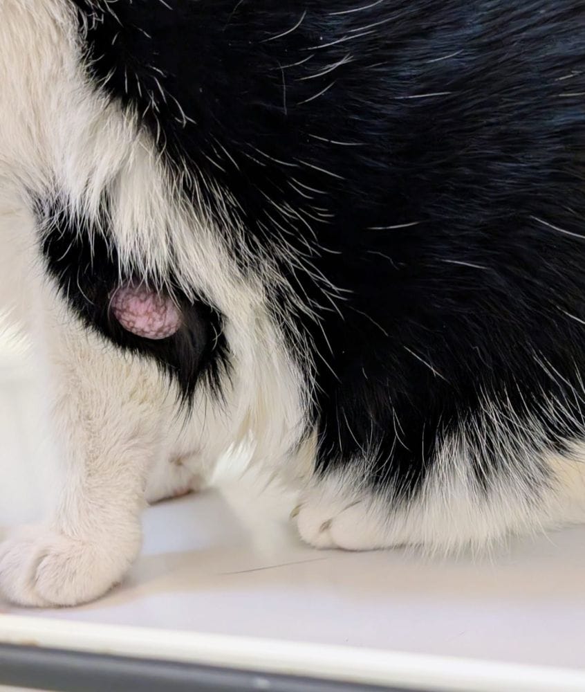 We have removed the cist pictured, tested negative for FIV/FeLV, he had a dental as he had a badly broken tooth, and has had his annual booster.